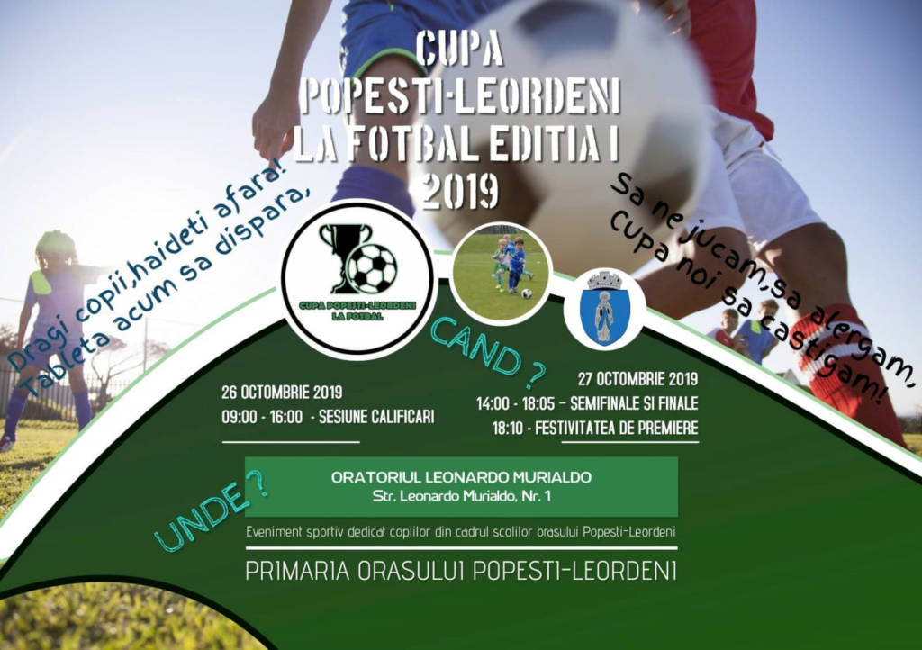 Din dorința de a atrage cǎtre mişcare copiii, Primǎria oraşului Popeşti-Leordeni organizeazǎ pe 26, respectiv 27 octombrie 2019 evenimentul sportiv „Cupa Popeşti-Leordeni la fotbal – Ediția I” 2019, eveniment dedicat copiilor din cadrul şcolilor oraşului Popeşti-Leordeni.